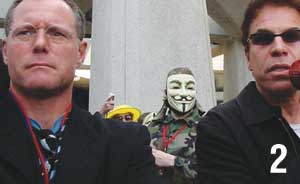 2. J.B. as anonymous poster-child with religious hatemonger Larry Wollersheim. 3. J.B. with German anti-religionist Ursula Caberta and friends. 4. M.A. who gives financial handouts to Kingpin in exchange for promised Kha-Khan ethics status. 5. The “webmaster,” who claims to have had a major role in the creation of the universe. |